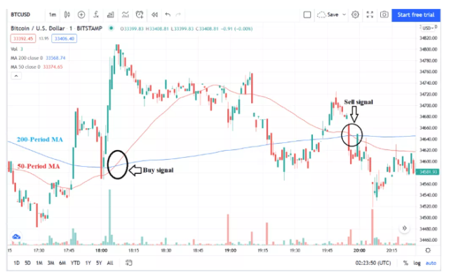 The Golden Cross/Death Cross strategy may almost scare new investors, but it’s straightforward to grasp the concept and invest practically following it. It remains among the leading strategies for Bitcoin trading strategies. And the core here is to trade using two moving averages or MA’s to analyze the markets and spot trading signals. And the signals are either for short or long trades.