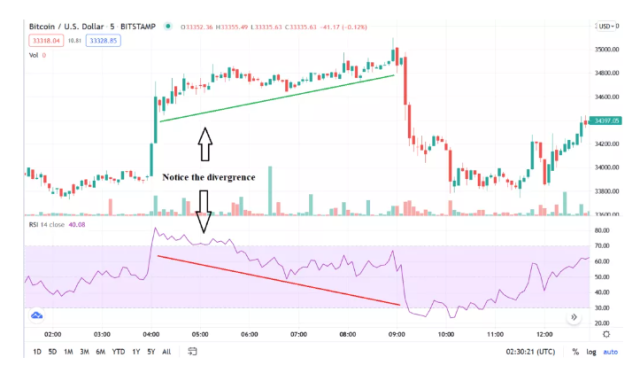 Therefore, traders look for discrepancies, where RSI moves in a direction opposite to the price. As such, selling or buying volumes change as the reversal potential builds up.
