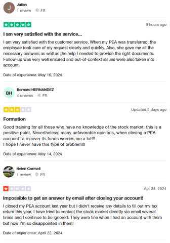 Bourse Direct receives mixed customer reviews. Many clients appreciate the excellent customer service and efficient handling of account transfers, such as PEA accounts, where employees provide clear instructions and necessary assistance. The broker also offers good training for beginners, helping those with no prior knowledge of the stock market. However, some users have expressed concerns about difficulties in closing accounts and recovering funds, with reports of inadequate follow-up and unresponsive support. Additionally, the new platform using MT5 has received criticism, with some clients preferring other platforms like TradingView.