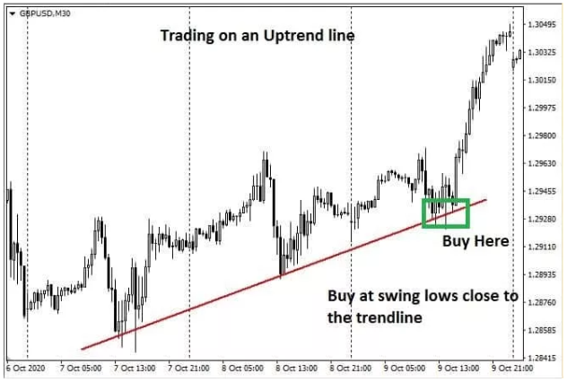 Once the swing position establishes, it’s your chance to work with a stop loss adjacent to the trendline but a few pips away and enter a position in the direction of the prices.