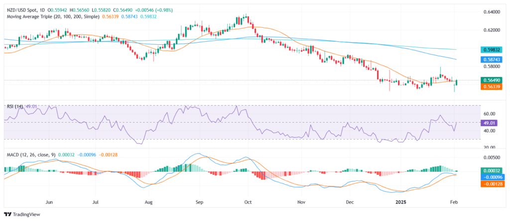 Additionally, the US dollar weakened, pressured by declining Treasury yields and speculation that the Federal Reserve may adopt a more cautious approach to future interest rate hikes. This shift reduced the greenback’s appeal, allowing NZD/USD to break above the key 20-day SMA, a technical level often viewed as an indicator of short-term trend direction.